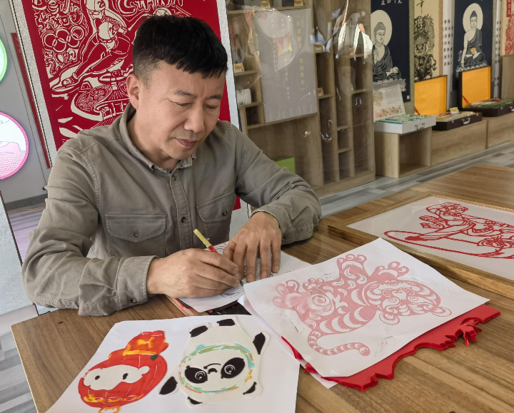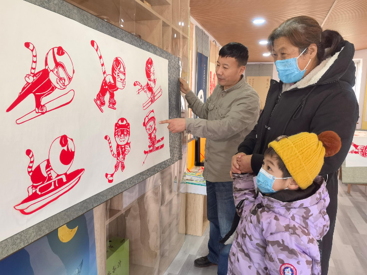 民间艺人剪纸祝福冬奥。李瑛 摄